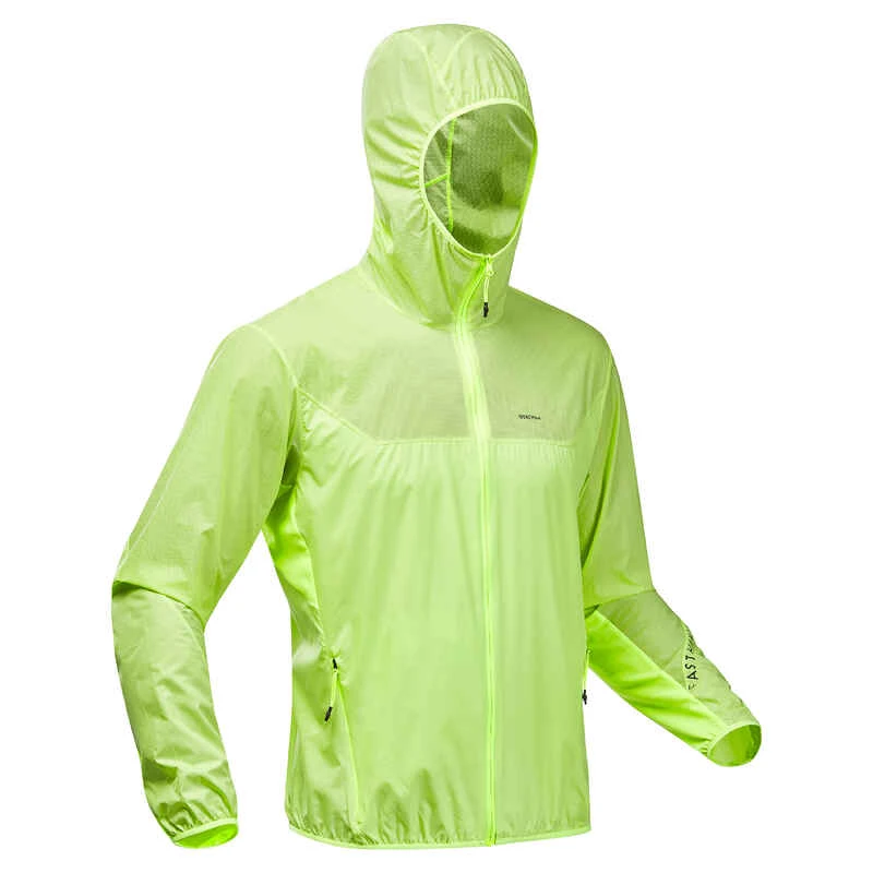 Körpernaher Schnitt für hohe Bewegungsfreiheit und leichten Windschutz. Die Jacke kann mit einer zweiten dünnen Kleidungsschicht, z. B. aus Fleece-Material, kombiniert werden.